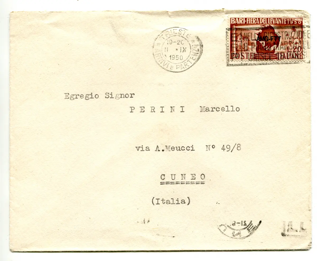 Triest A - Bari '50 isoliert auf Tarifumschlag