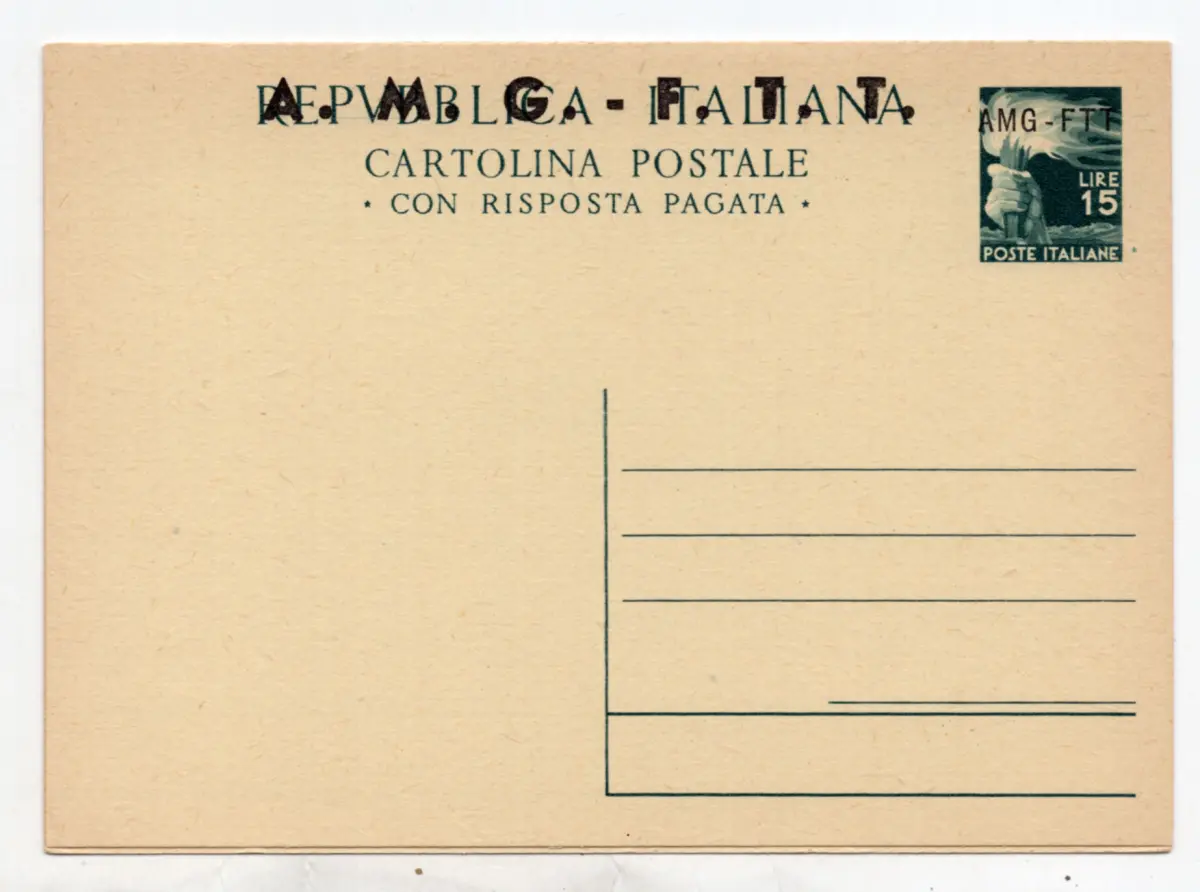 Triest A - C.P. Lire 15+15 Democratica n. C 11 Aufdruck große Postkarte - Triest A - C.P. Lire 15+15 Democratica n. C 11 großer Aufdruck - neu einwandfrei - Kat.  65 Code Nr. 832/4