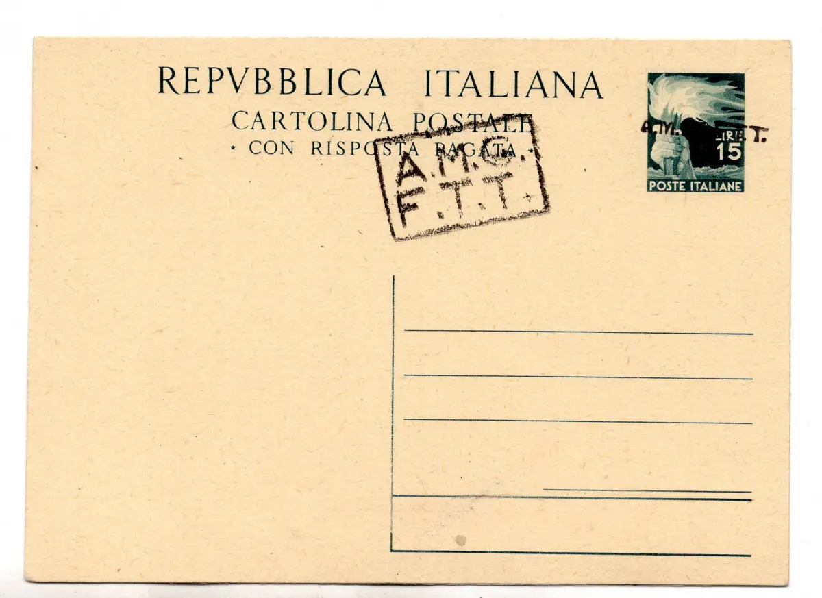 Triest A - C.P. Lire 15 + 15 Demokratische Nr. C7 mit Handaufdruck A + B - postfrisch einwandfrei - Selten - Kat. euro 1.750 n. 1362/20