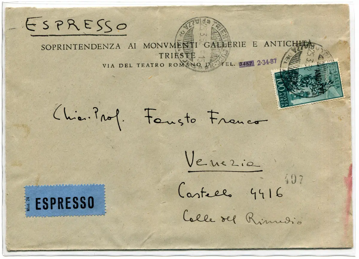 Triest A Lire 100 Kapitol isoliert auf Express Umschlag - Luftpost Kapitol Lire 100 Nr. 23 isoliert auf Expressumschlag von Triest nach Venedig am 25.3.52 - Selten, im Tarif drei Häfen Cod 1030/14