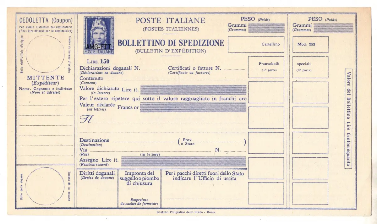 Postkarte - Triest A - Versandzettel Lire 150 Turrita mit Druck Nr. P 15, neu in sehr gutem Erhaltungszustand - Selten, extrem unterbewertet in den Katalogen Cod. 3215 / WEB