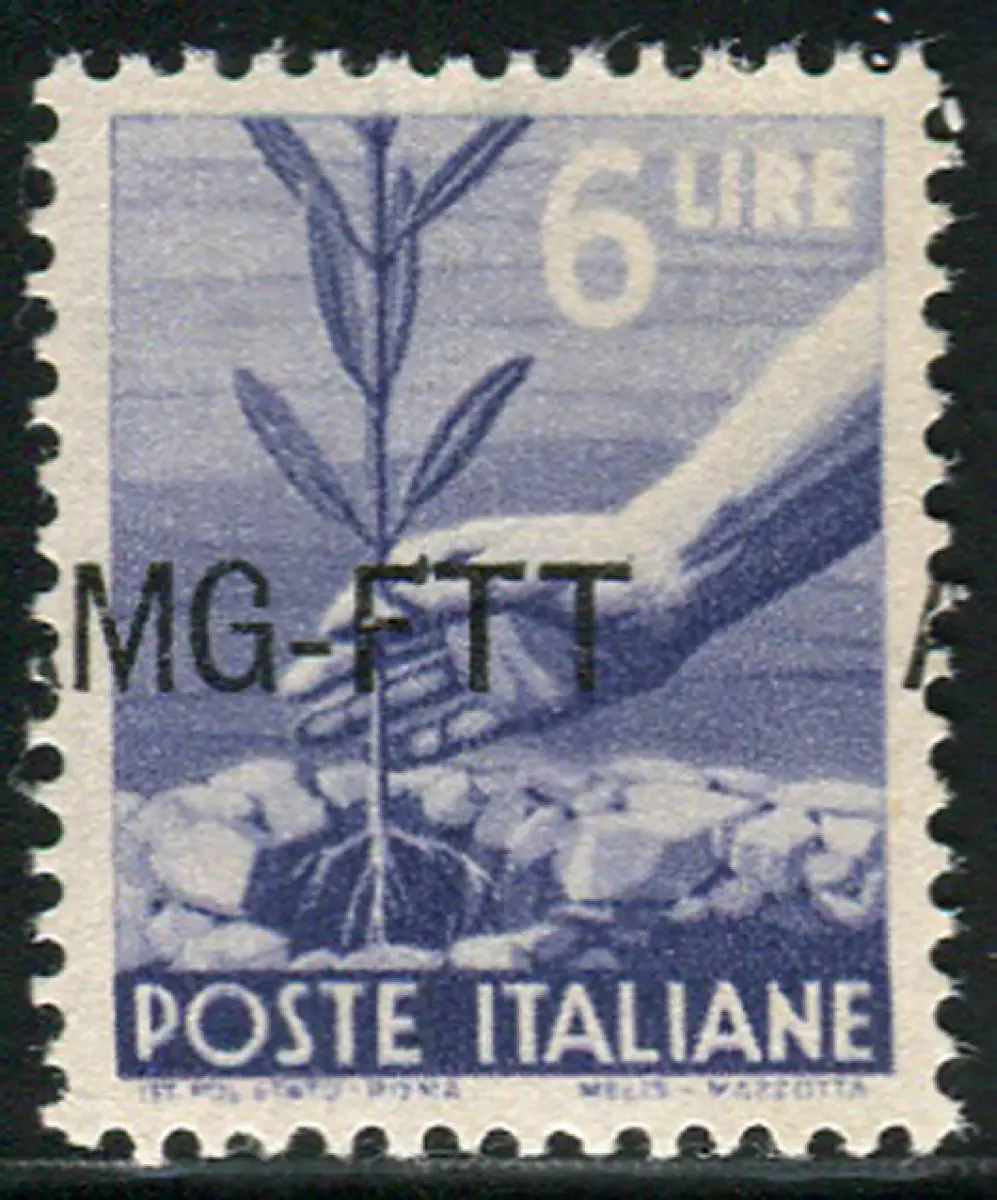 Triest - Democratica Lire 6 Sorten verschobener Aufdruck Vollgummi - Democratica Lire 6 Nr. 60i stark nach links verschobener Aufdruck - sehr gut zentriert - Kat. euro 65 n. 817/6