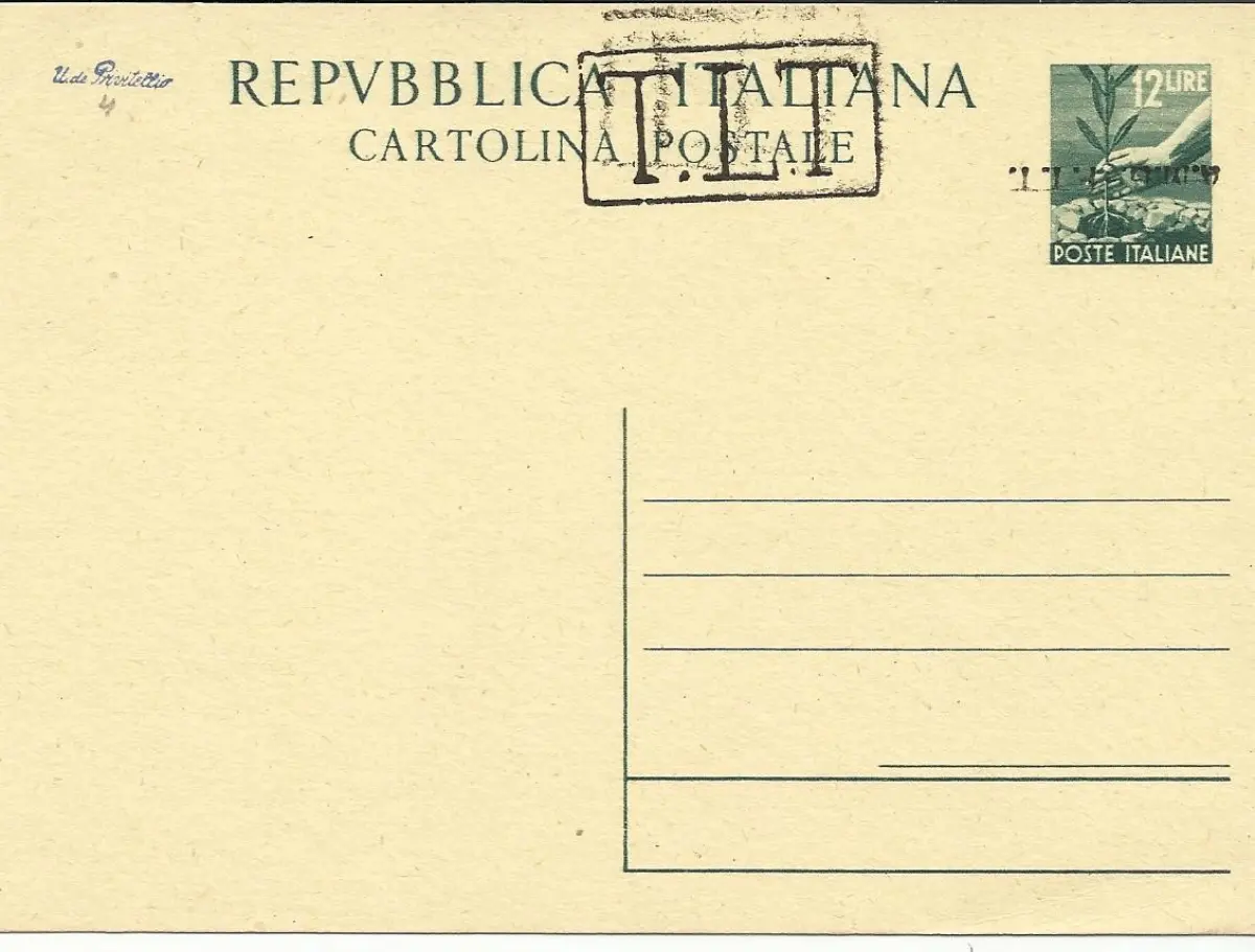 Triest A - Lire 12 Democratica n. C 3A (sopr. A+C) Sorte Aufdruck Umgedrehte Postkarte - Triest A - C.P. Lire 12 Democratica Nr. C 3A (sopr. A+C) Sorte Aufdruck A umgedreht - Neu einwandfrei - Selten - Kat. euro 150 Code Nr. 804/4