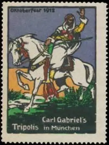 Oktoberfest, Carl Gabriels Tripolis in München, Größe/Zustand: 6x4 , guter Zustand, Original alte Reklamemarke die seinerzeit für die Werbung benutzt wurde