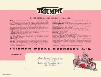 Triumph BDG 250 Prospekt 1950