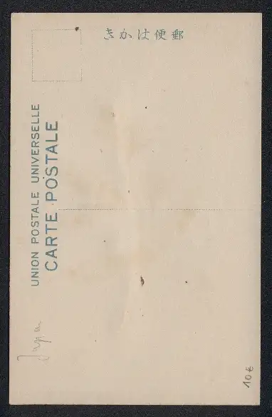 Personenbezogene Daten auf der Rückseite der Karte wurden durch blauen Textmarker unkenntlich gemacht. Die blauen Stellen sind auf die Vorderseite durchgeweicht und wirken sich negativ auf das Postkartenfoto aus