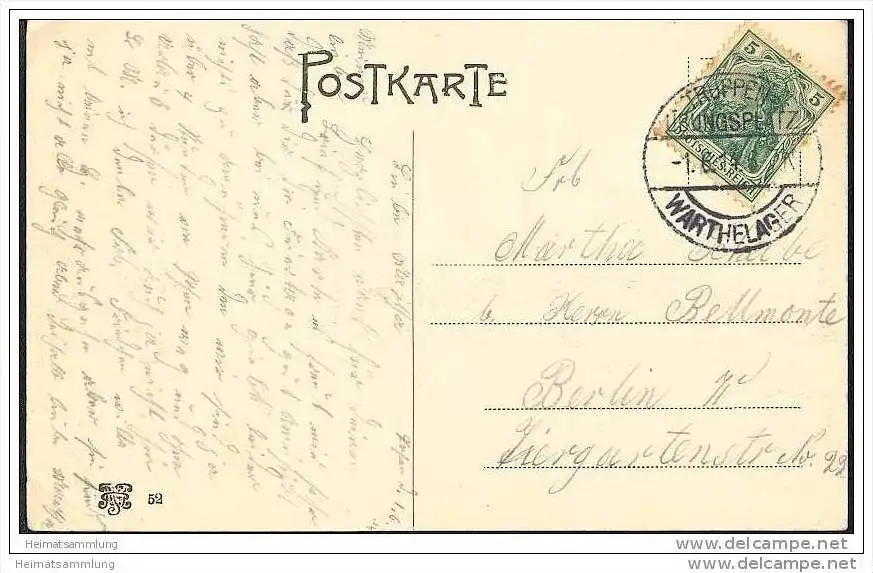 Truppenübungsplatz Posen - Warthelager - Eckknick rechts unten - Übungsplatzstempel (G18530) gel. 1914