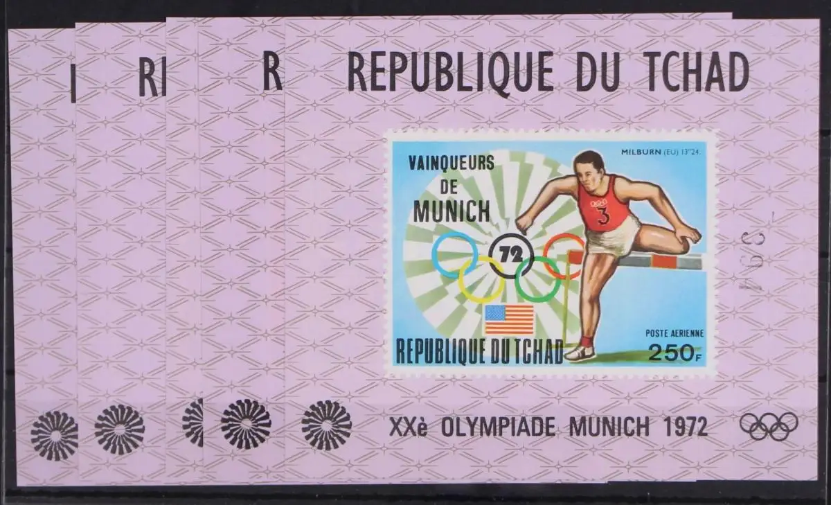 Tschad 620-622 + 624-625 postfrisch als Einzelblocks, Olympia 1972 #GD685