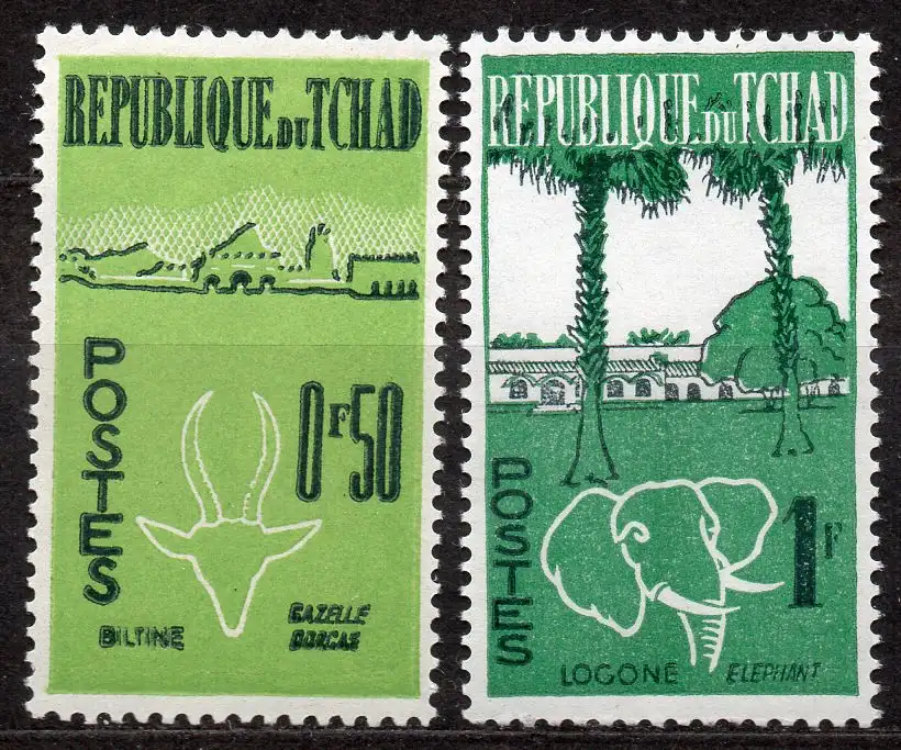 Tschad, Mi-Nr. 69 + 70 **, Tiere und Landschaften