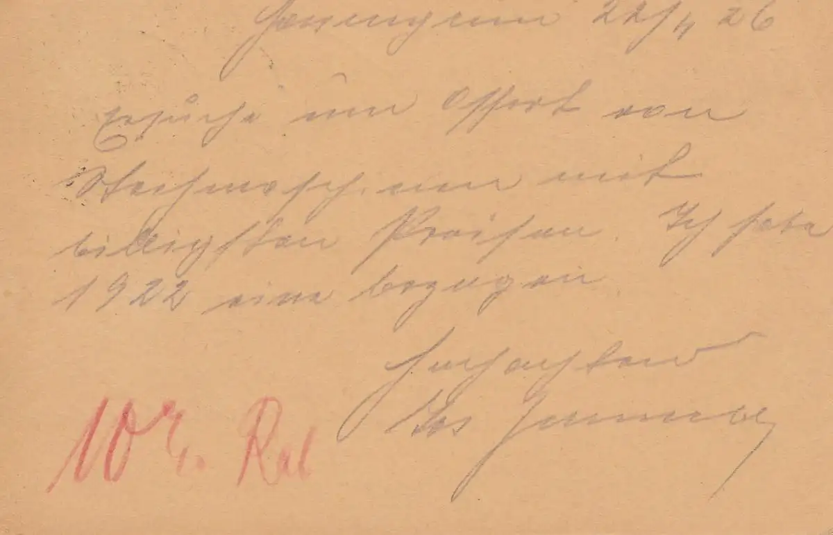 Tschecheslowakei: 1926: Ganzsache nach MÜnchen, Nachgebühr