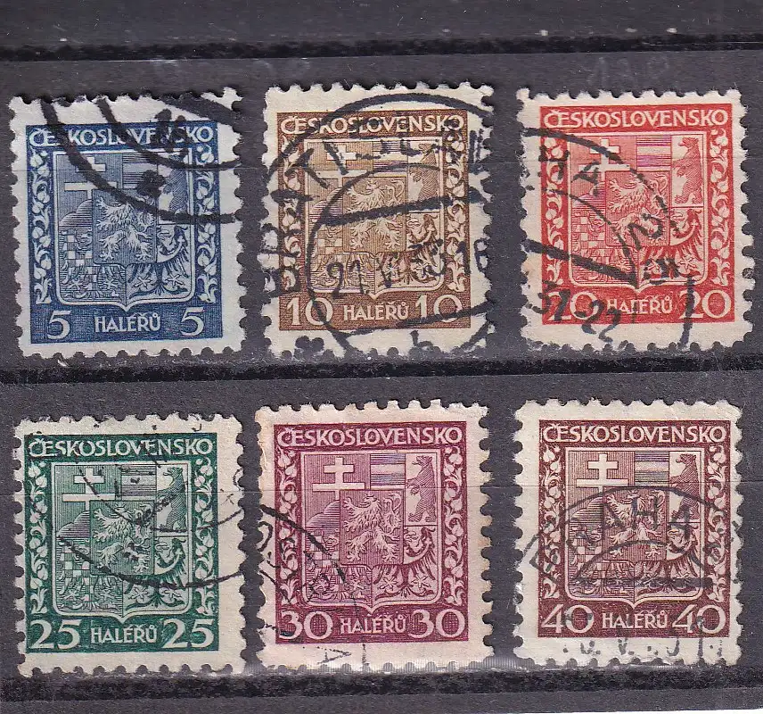 CESKOSLOVENSKO TSCHECHOSLOWAKEI CSR 1929 WAPPEN 5-40h/ Mi 277-282 SET USED/ SATZ GESTEMPELT