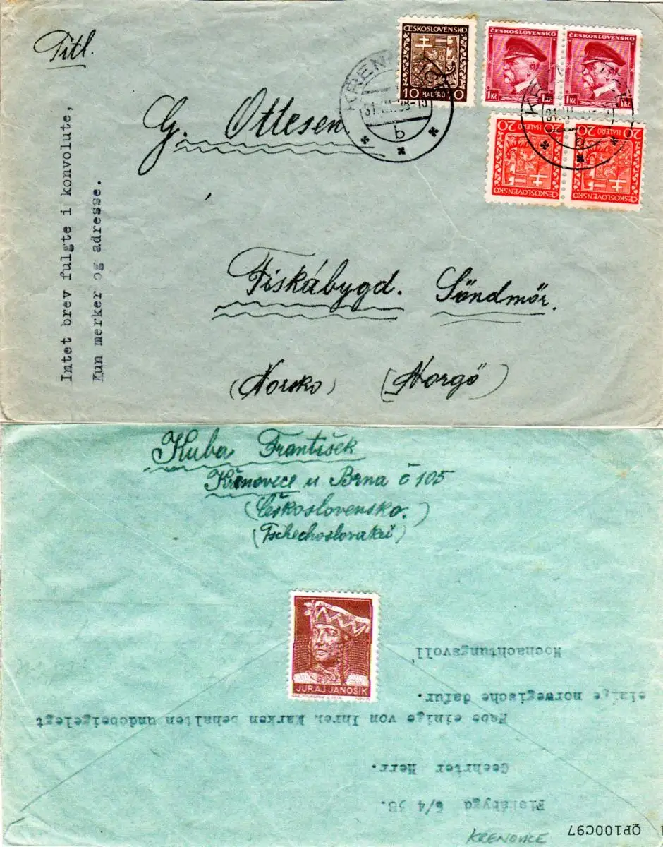 Tschechoslowakei 1938, 5 Marken auf Brief v. KRENOVICE n. Fiskabygd, Norwegen