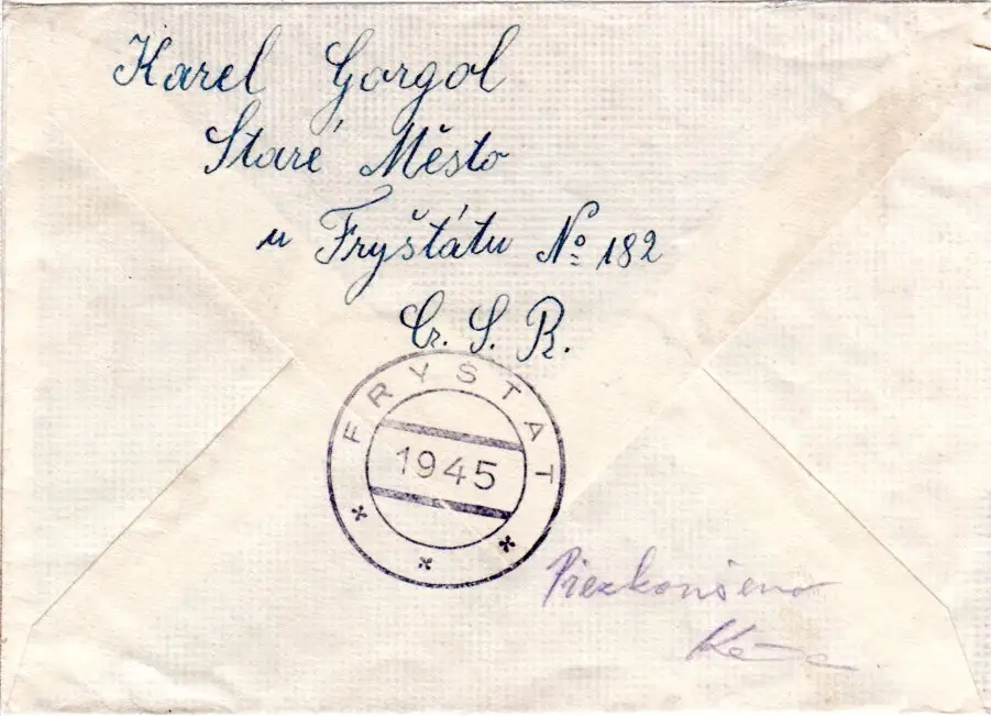 Tschechoslowakei 1945, Einschreiben Luftpost Brief m. überstempelem Dt. R-Zettel
