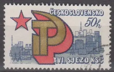 Parteitag der Kommunistischen Partei der ČSSR: Hammer und Sichel, Roter Stern, Stadtansicht von Prag
