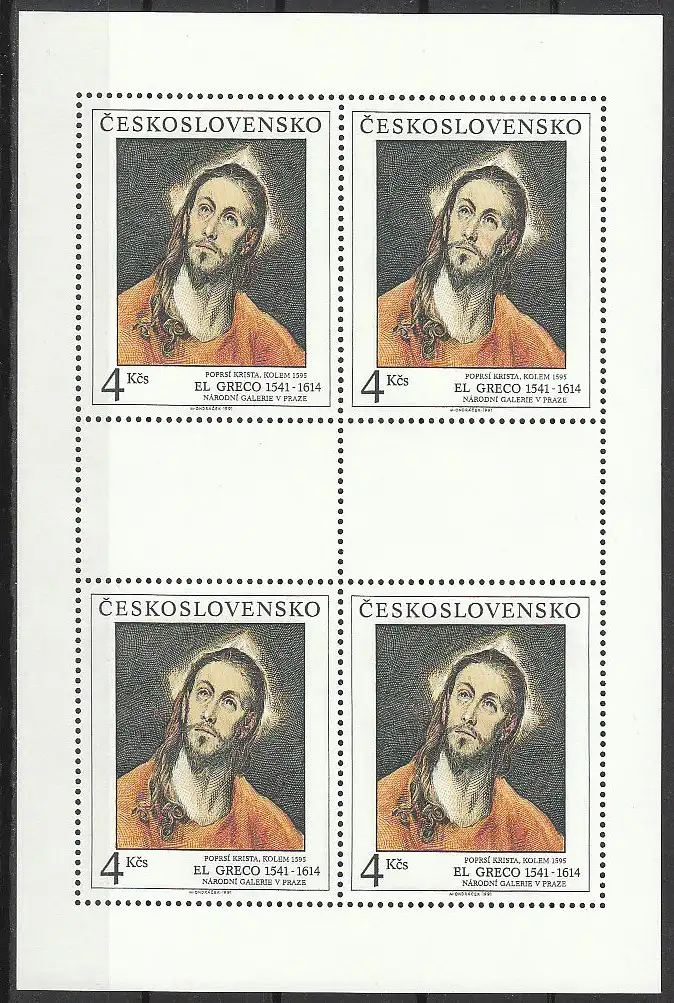 Kunstwerke aus den Nationalgalerien (XXIV); Internationale Briefmarkenausstellung PHILANIPPON ’91, Tokio: Christusbild; Gemälde von El Greco (Domenikos Theotokopoulos) (1541-1614), spanischer Maler