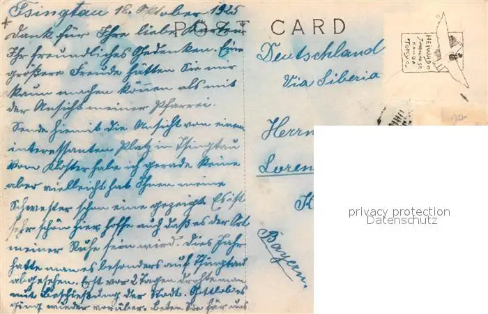 Tsingtau_Tsingtao Kategorie Alte Ansichtskarten Postkarten bx72528 Tsingtau_Tsingtao Pacific Road postalisch gelaufen Erhaltung siehe scans [WerneD78]