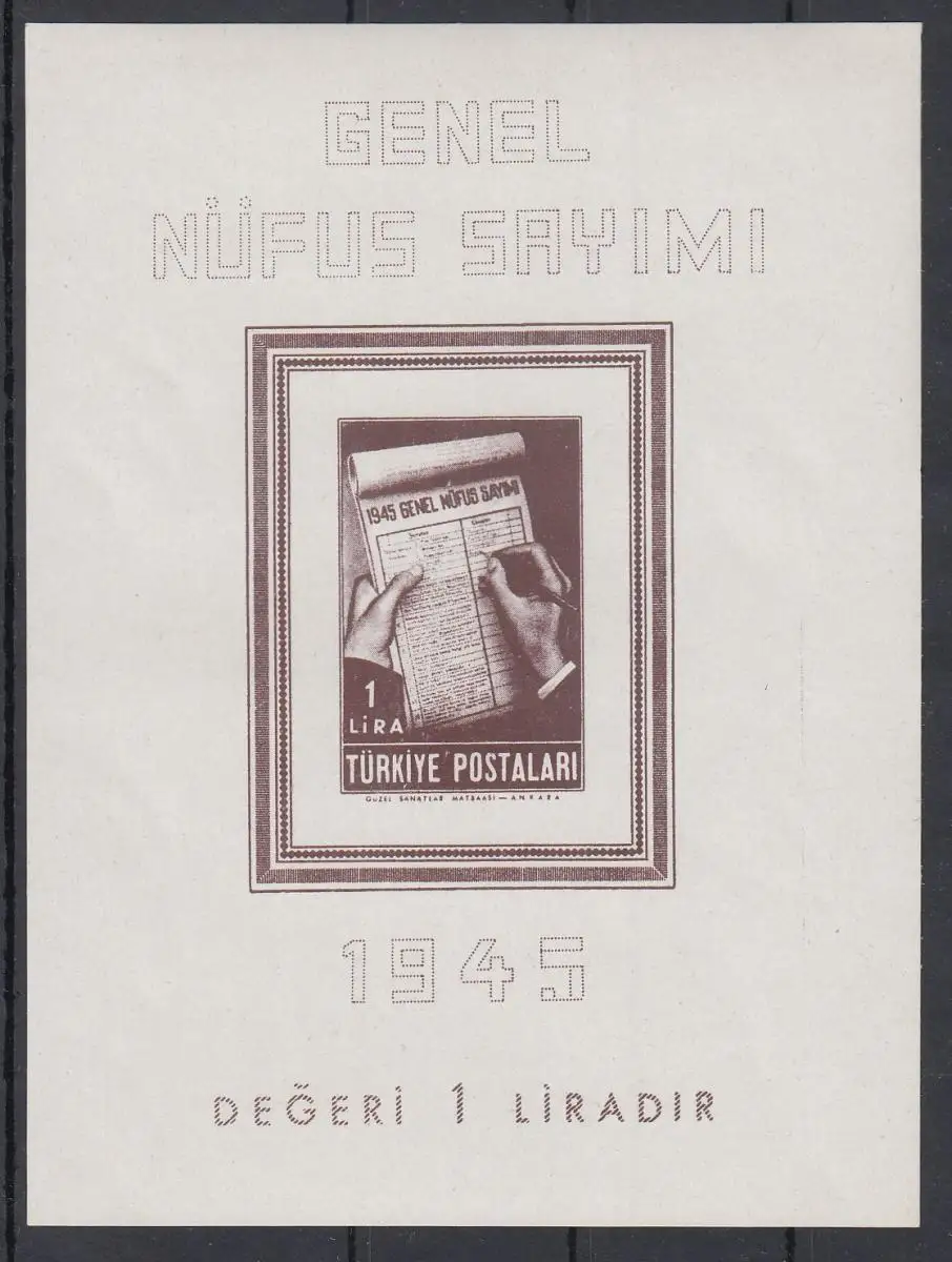 Türkei 1945 Volkszählung Mi.-Nr. 1172 Blockausgabe Block 3 **