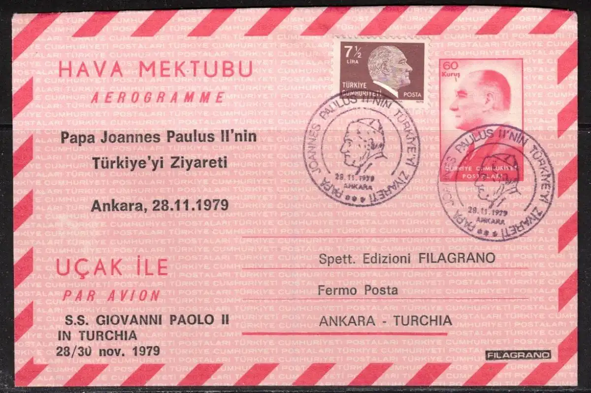 268 *TÜRKEI * LUFTPOSTBRIEF VOM BESUCH PAPST JOHANNES PAUL II IN DER TÜRKEI * GANZSACHE MIT ZUSATZFRANKATUR UND SONDERSTEMPEL **!!