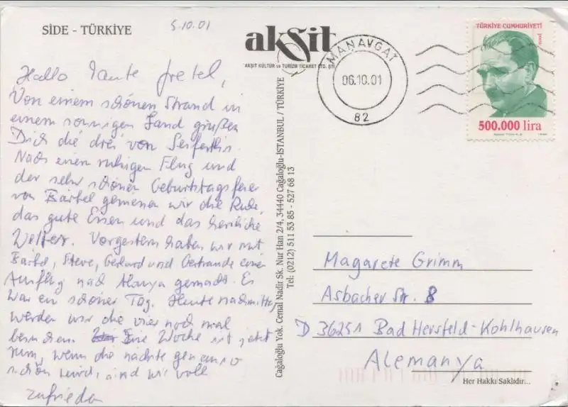 Ich hatte die Rechnung sofort als Vorkasse bezahlt, aber keine Zusendung der Karte erhalten. Trotz Nachfrage keine Rückmeldung bzw. Erklärung. Da es sich zum Glück nur um 1,70 € handelt, ist die Sache für mich erledigt, ärgerlich, aber zu verkraften. Mit den drei anderen Karten, die ich bestellt hatte, hat alles wunderbar geklappt.
