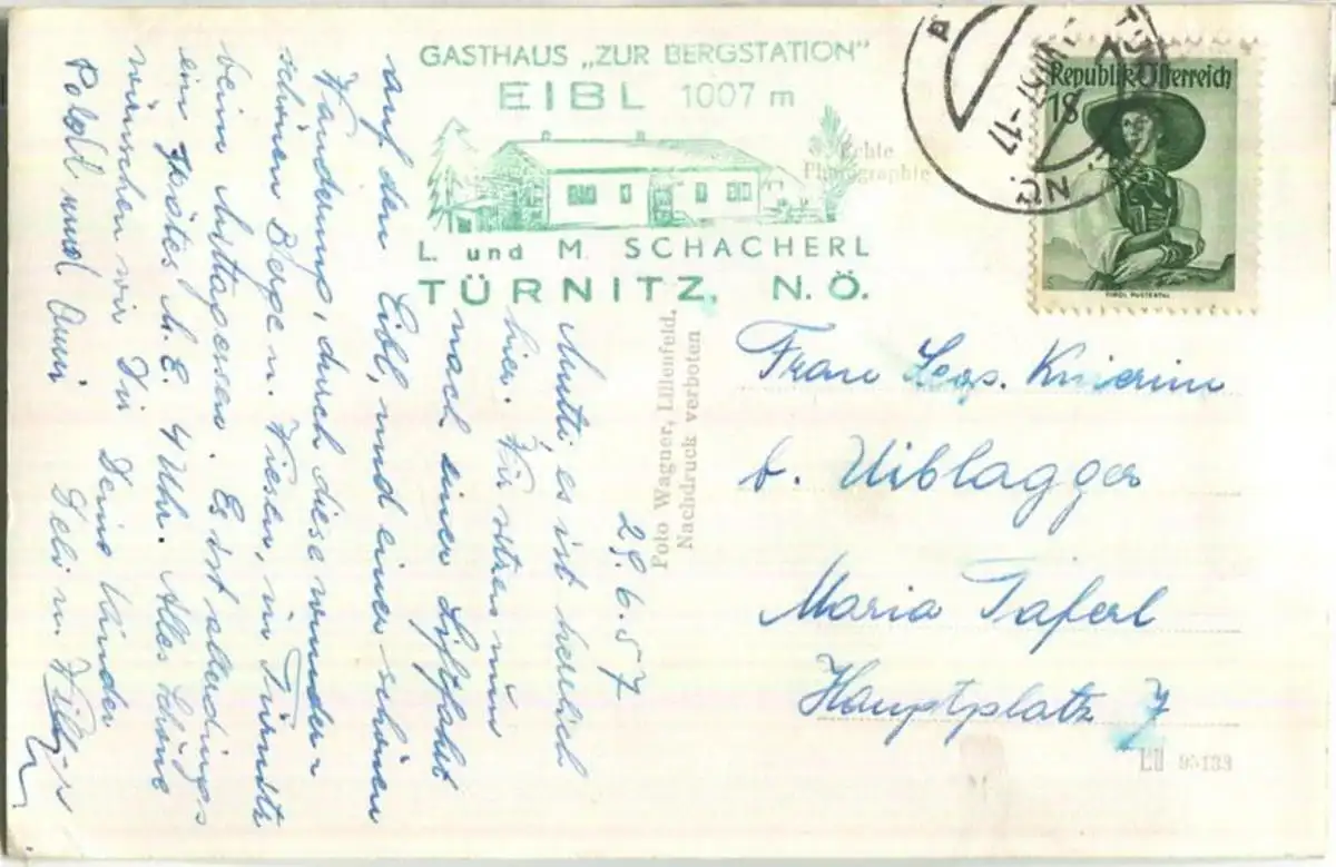 Türnitz mit Berglift - Verlag Foto-Wagner Lilienfend - kleiner Eckknick unten links (G4132) gel. 1957