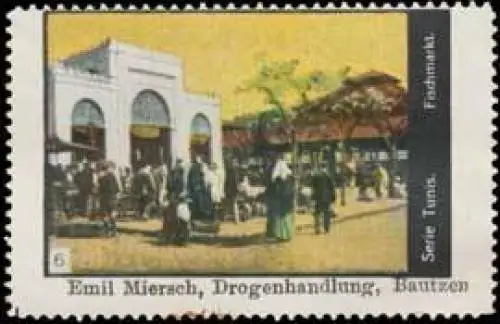 Fischmarkt, Serie: Tunesien, Größe/Zustand: 4x6 , guter Zustand, Original alte Reklamemarke die seinerzeit für die Werbung benutzt wurde