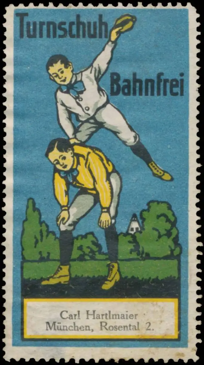 Bockspringen, Schuhe, Sport, Größe/Zustand: 7x4 , fleckig, Original alte Reklamemarke die seinerzeit für die Werbung benutzt wurde