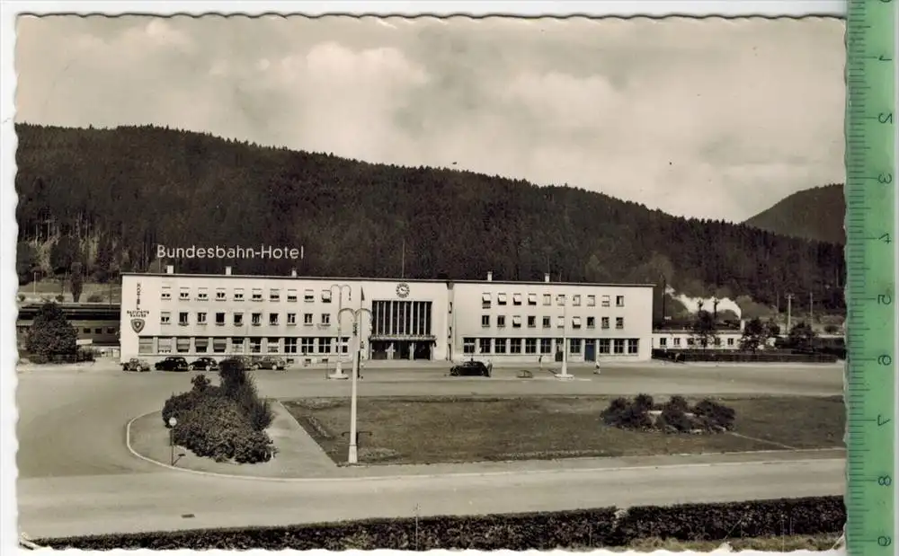 Tuttlingen, Bahnhof 1955, Verlag: Walter Saurer, POSTKARTE mit Frankatur mit Stempel TUTTLINGEN 30.4.55, Karte wird in Klarsichthülle verschickt. (H)