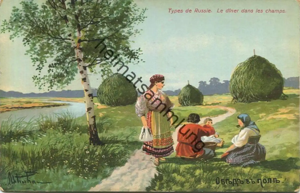 Types de Russie - Le diner dans les champs ca. 1910 (E22773)