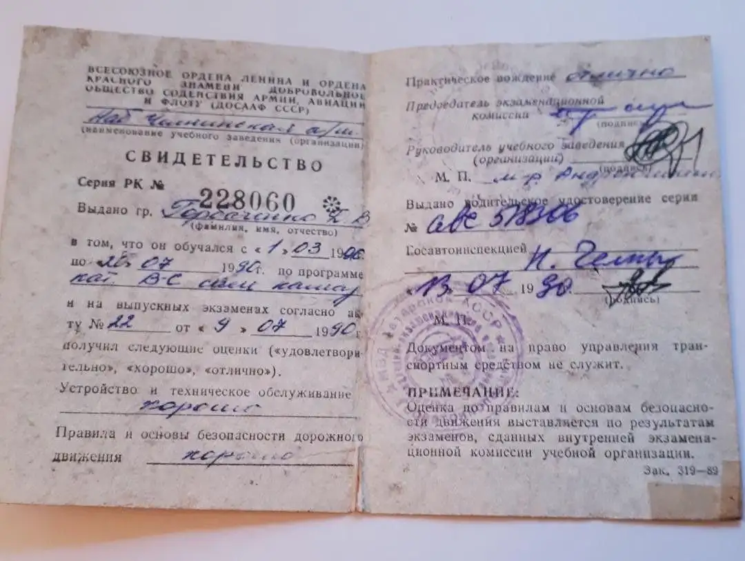 UDSSR Sowjetisches Zertifikat DOSAAF