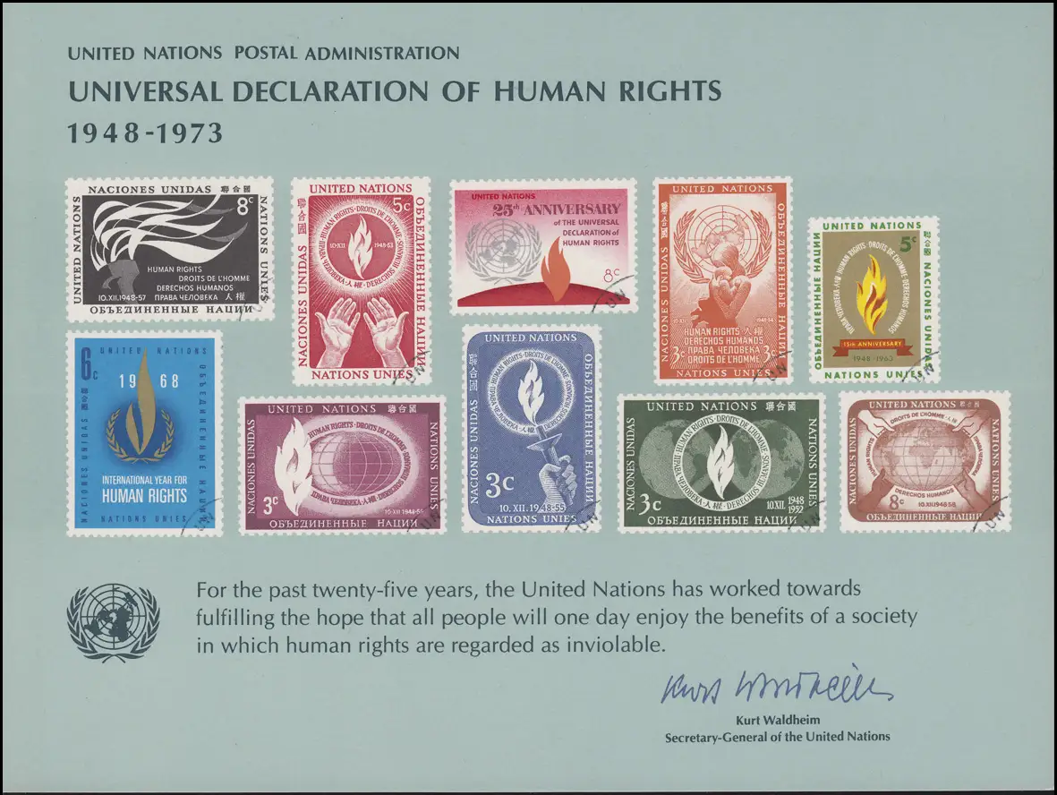 UNO Erinnerungskarte EK 4 Menschenrechte 1973, ungebraucht **