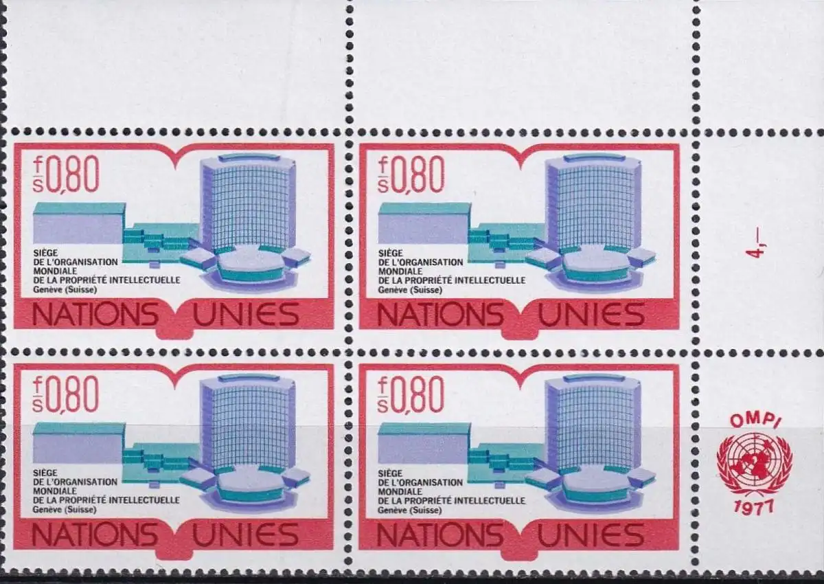 UNO GENF 1977 Mi-Nr. 63 Eckrand-Viererblock ** MNH