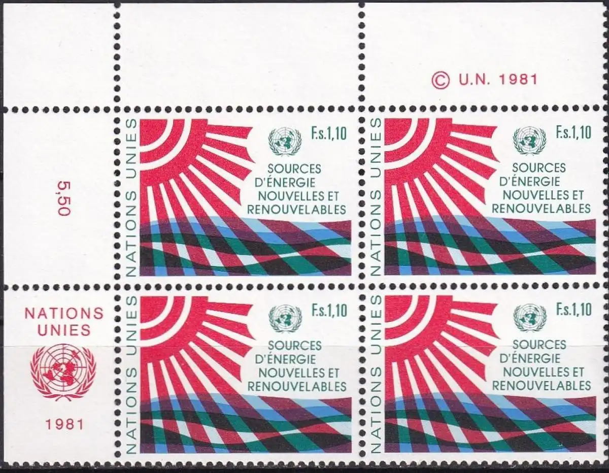 UNO GENF 1981 Mi-Nr. 100 Eckrand-Viererblocks ** MNH