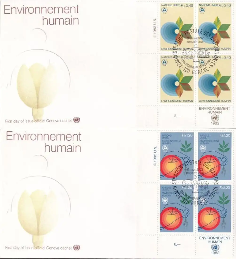 UNO GENF 1982 Mi-Nr. 105/06 Eckrand-Viererblock FDC