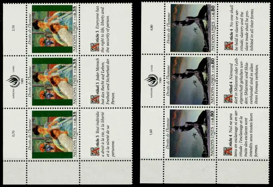 UNO Menschenrechte 1989, 6er Block (MichelNr.: 180, 181)