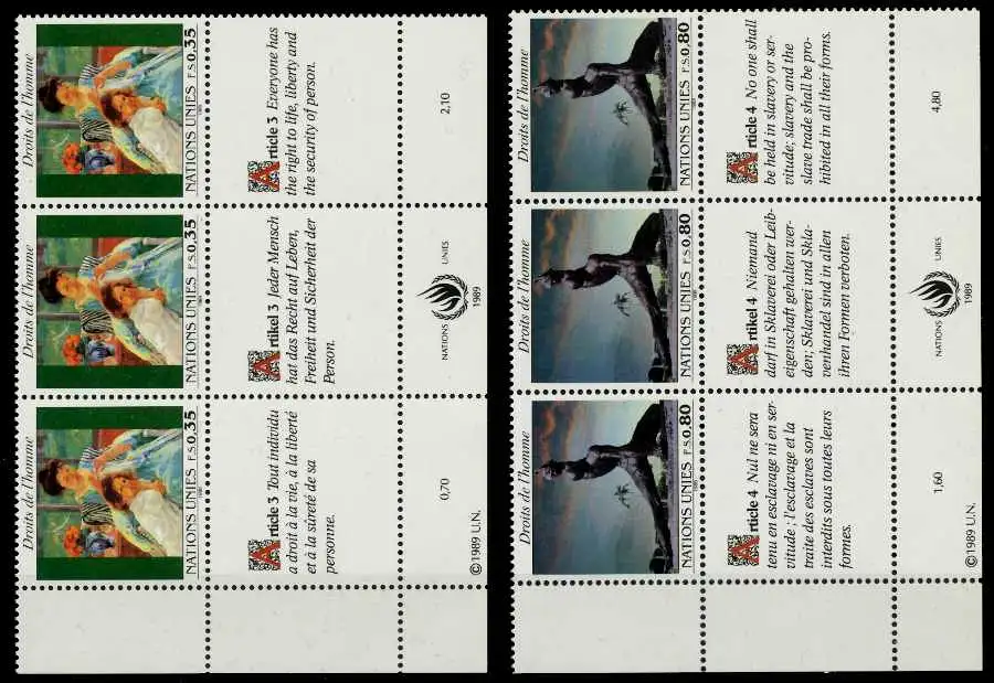 UNO Menschenrechte 1989, 6er Block (MichelNr.: 180, 181)