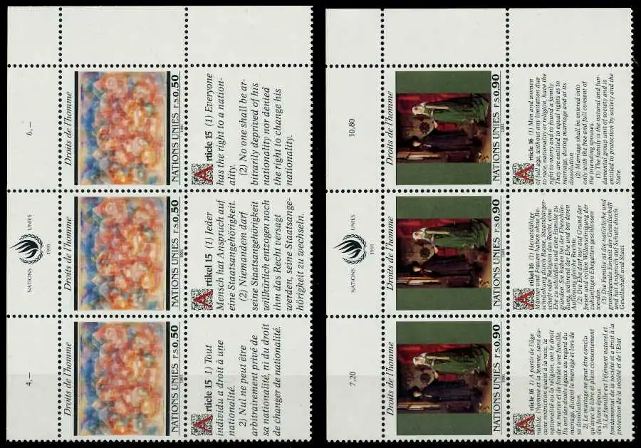 UNO Menschenrechte 1991, 6er Block (MichelNr.: 208, 209)