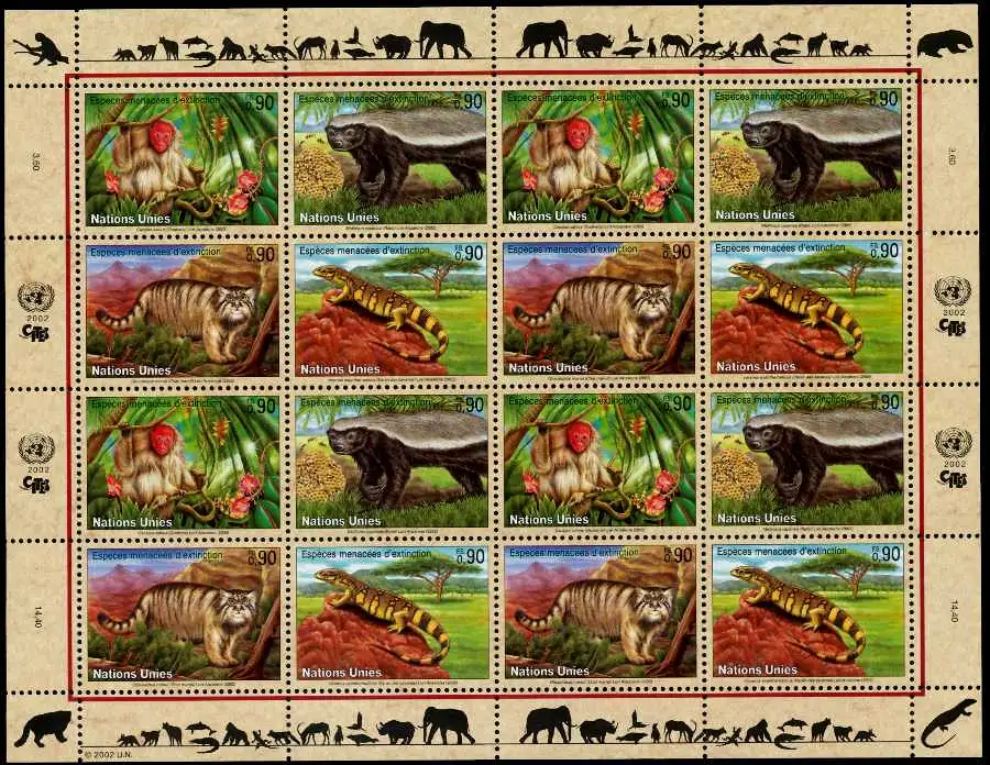 UNO Kleinbogen gefährdete Tiere im Kleinbogen, Nominale 14,40 SFR !
