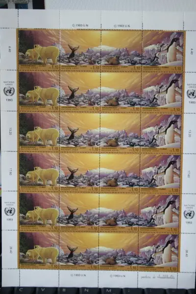 UNO Genf, Kleinbogen Tiere, 6 x 4 Werte