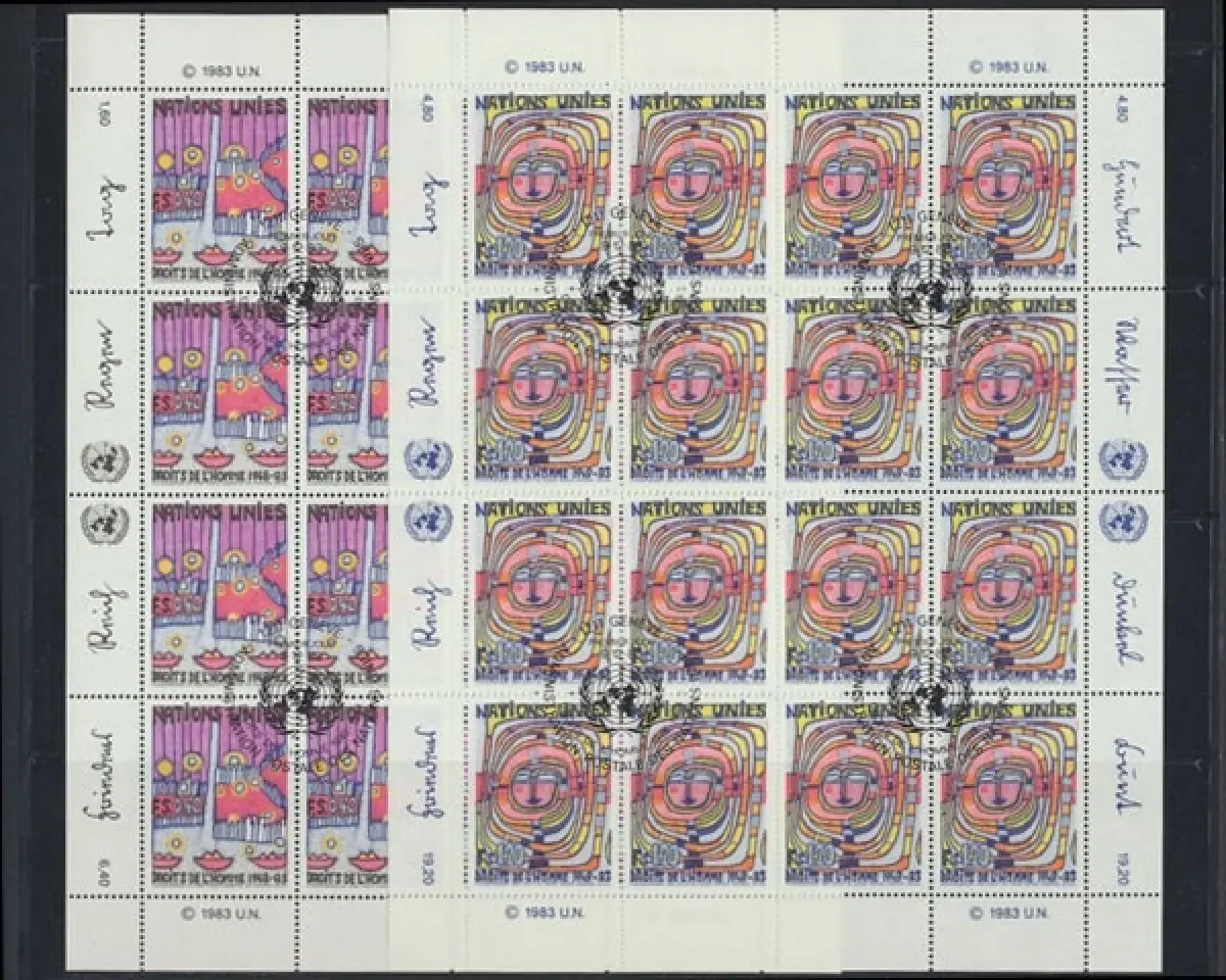 Hundertwasser, 2 Kleinbögen, Ersttagssonderstempel.