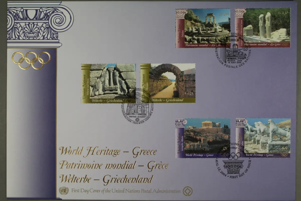 UNESCO Welterbe: Griechenland, NY 959-960, Genf 495-496, Wien 420-421.