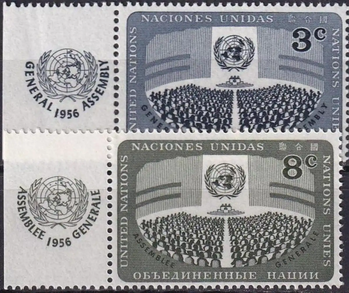UNO NEW YORK 1956 Mi-Nr. 51/52 TAB ** MNH