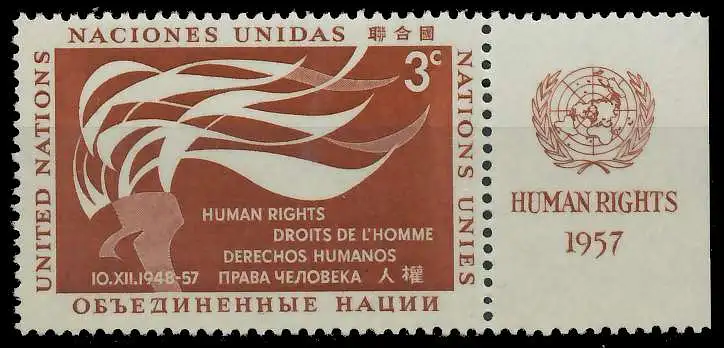 3c Wert aus der Ausgabe Tag der Menschenrechte, mit Randzierfeld rechts