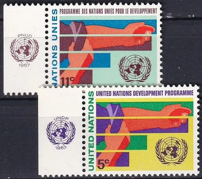 UNO NEW YORK 1967 Mi-Nr. 174/75 TAB ** MNH