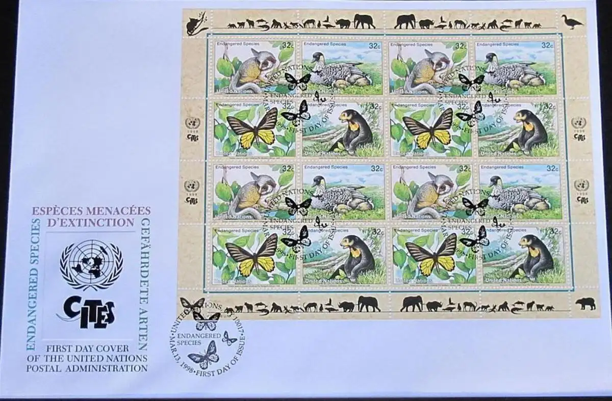 UNO NEW YORK 1998 Mi-Nr. 767/70 Kleinbogen Gefährdete Arten FDC