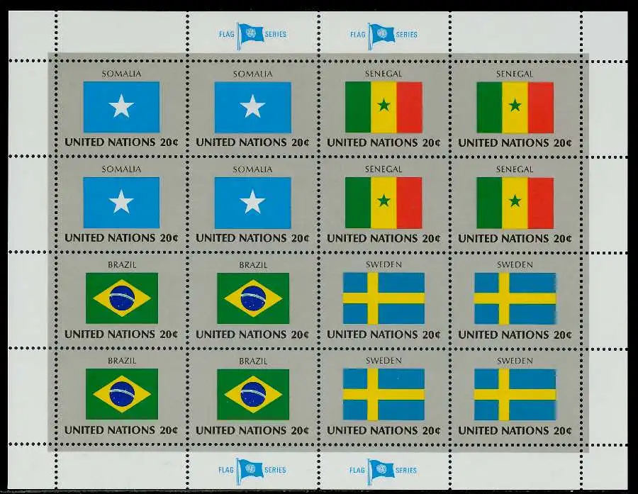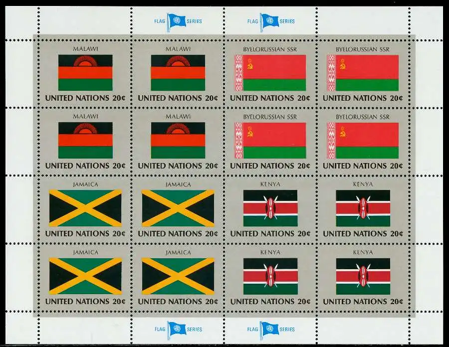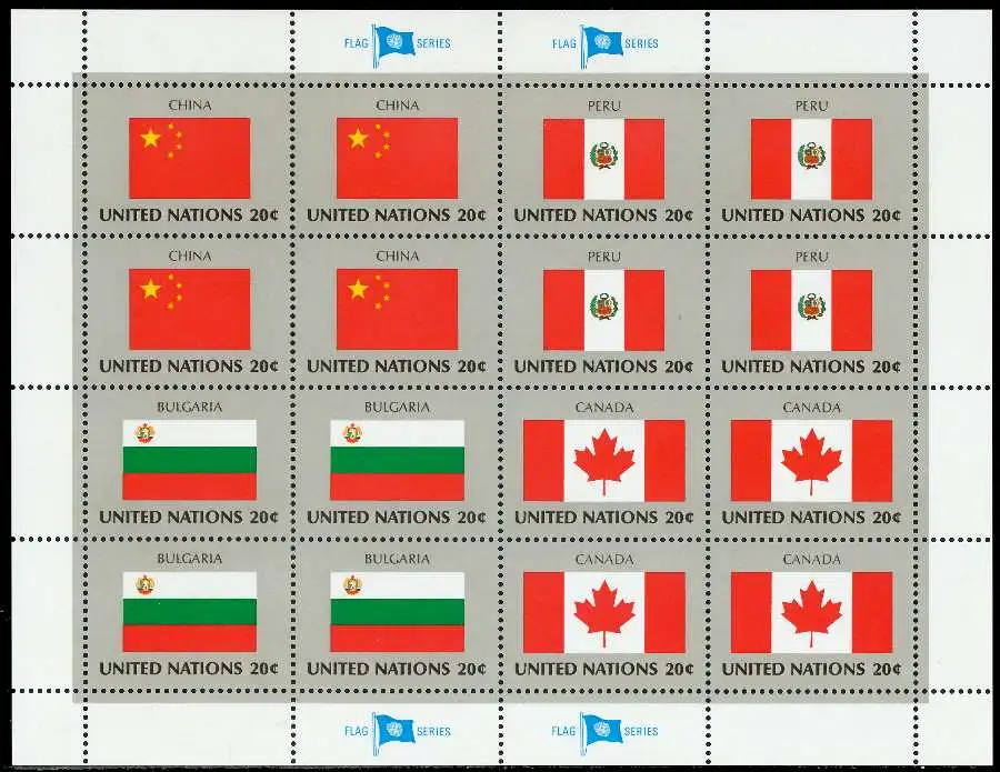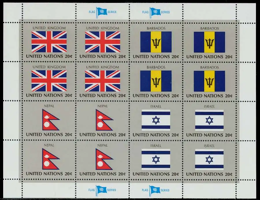 UNO Flaggenbogenausgabe des Jahres 1983 / 4 Kleinbogen, Nominale 12,8$