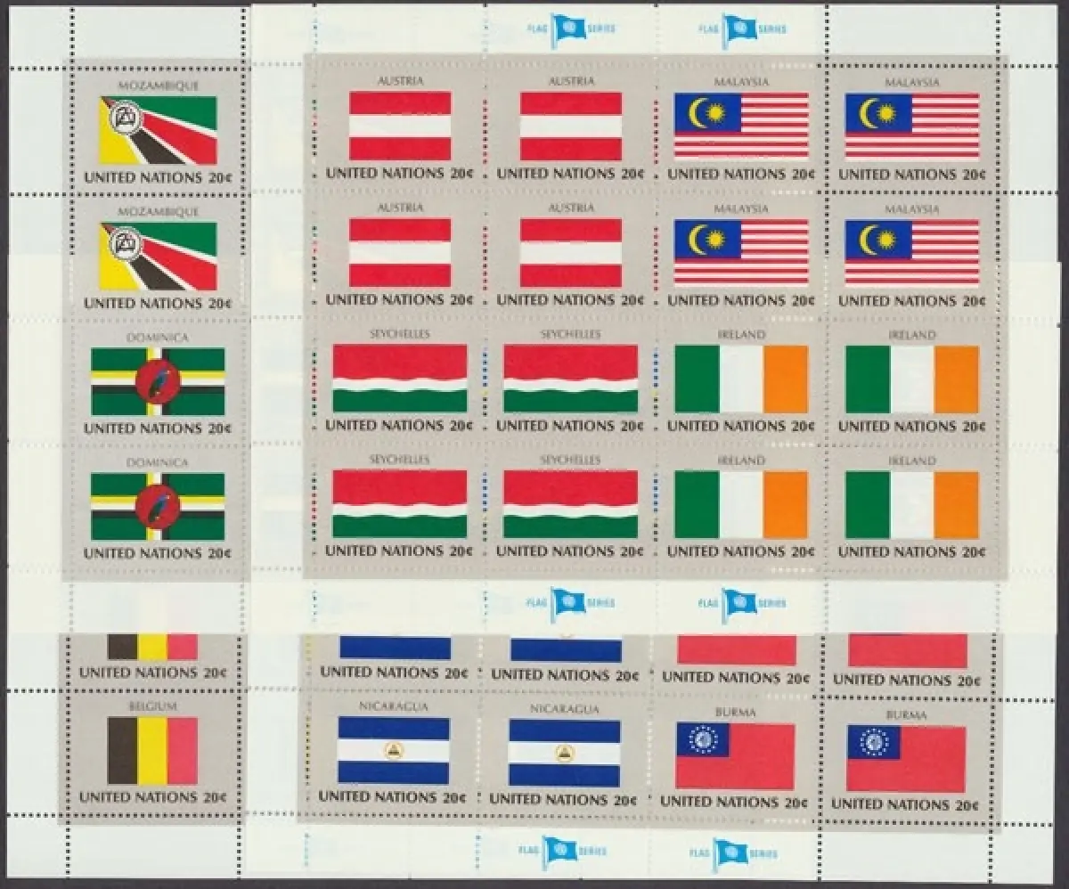 Flaggen der UNO, 1982, 4 Kleinbögen.