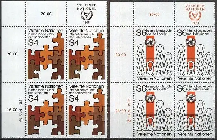 UNO WIEN 1981 Mi-Nr. 17/18 Eckrand-Viererblocks ** MNH
