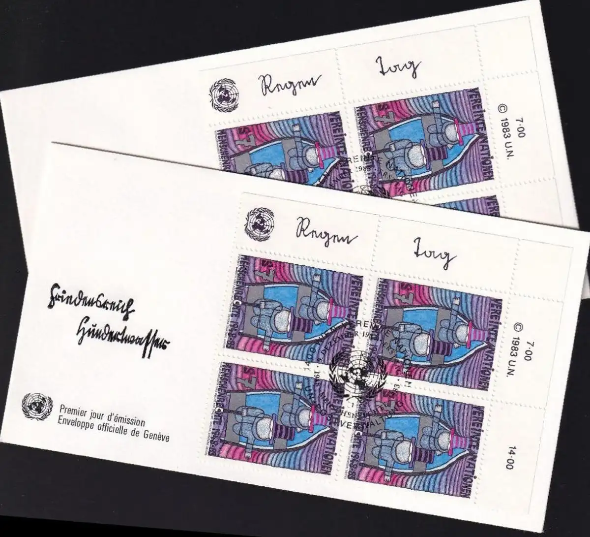 UNO WIEN 1983 Mi-Nr. 36/37 Eckrand-Viererblock FDC