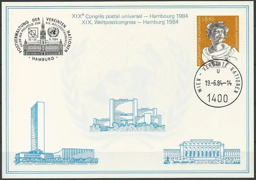 UNO WIEN 1984 Mi-Nr. 40 WEISSE KARTE - HAMBURG 19.06.1984
