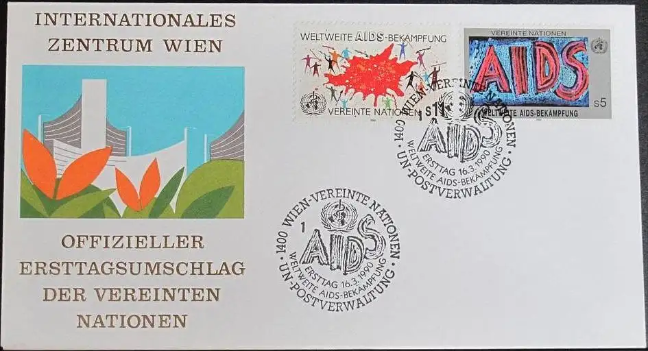 UNO WIEN 1990 Mi-Nr. 100/01 FDC